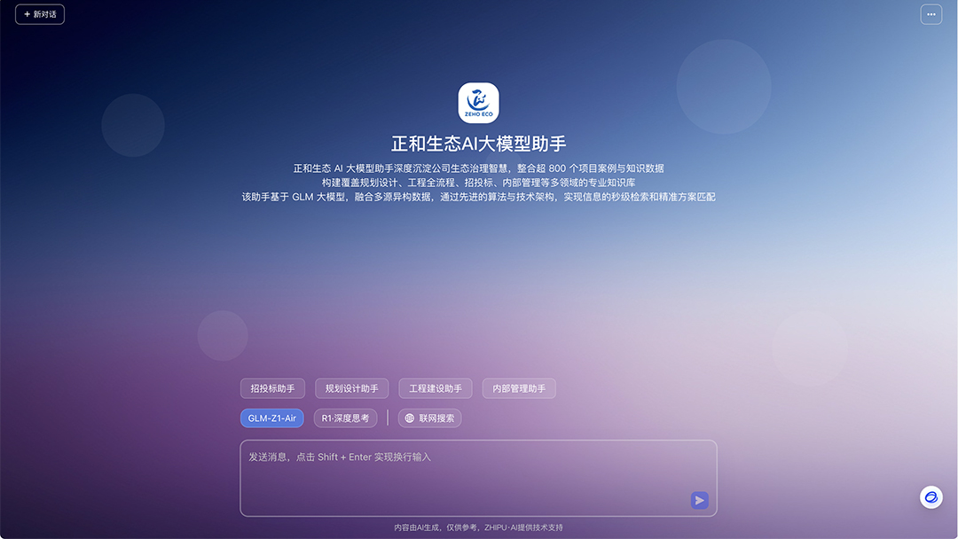 The company signed a strategic cooperation agreement with Zhipu AI, and jointly released an "AI Knowledge Base" and "China's first vertical large language model for marine ecological restoration, ShorelineGLM" with Zhipu AI and the Third Institute of Oceanography, MNR. The Knowledge Base serves as a key tool for internal information storage, technological upgrading, and business expansion, effectively stimulating innovation and helping reduce costs and increase efficiency. ShorelineGLM can accurately diagnose the root causes of marine ecosystem degradation and dynamically predict restoration outcomes, promoting a shift in marine ecological restoration from "experience-driven" to dual-driven by "data + AI," significantly enhancing project scientific rigor and efficiency. Additionally, the river-lake ecological restoration large model jointly developed by the company, Zhipu AI, the National Engineering Research Center for Lake Pollution Control and Ecological Restoration, and WADI Design recently made its debut.