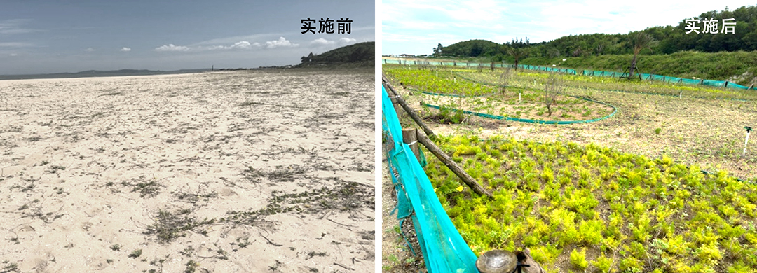 后滨沙地快速防风固沙的近自然植被层级构建技术应用前后对比