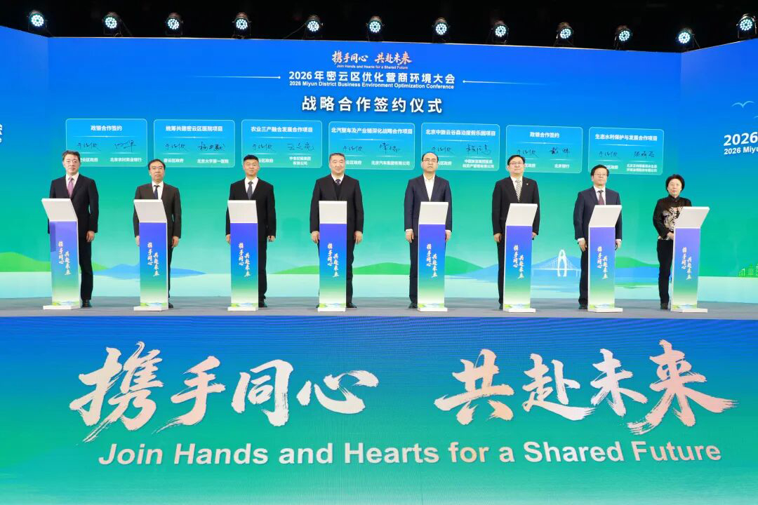2026年2月9日,密云区举办“携手同心,共赴未来”2026年优化营商环境大会,近300名企业界代表与政府部门负责人齐聚,共商发展、共绘蓝图,共促区域高质量发展。