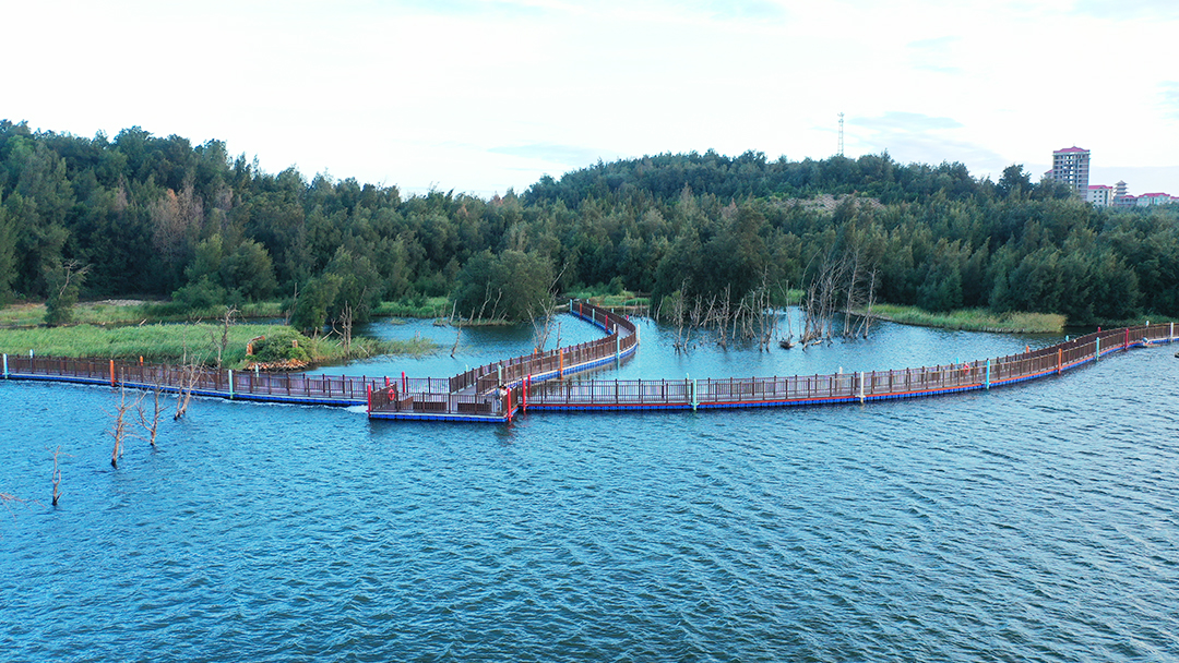经过生态工法的建设改造,莆田蓝色海湾实现了海堤巩固升级、生态修复改善、景观重塑共享。妈祖城海堤经改造后,防浪标准提升至50年一遇。紫玉湖湿地在2020年以前,还是一片杂乱的洼地,杂草丛生,垃圾堆弃,周边群众乱搭围挡等问题严重;改造后,这片与大海相距不过数百米的湿地,已成为人与自然和谐共生的海岸生态公园,起到了稳定海岸线、恢复潮间带生境的作用,随着周边水环境和植被环境的改善,不少鱼类、鸟类也在此栖息。如今,内湾地块遍布绿植,已修复的生态面积达22公顷,还配套有健身步道,成为当地新晋的网红打卡地。