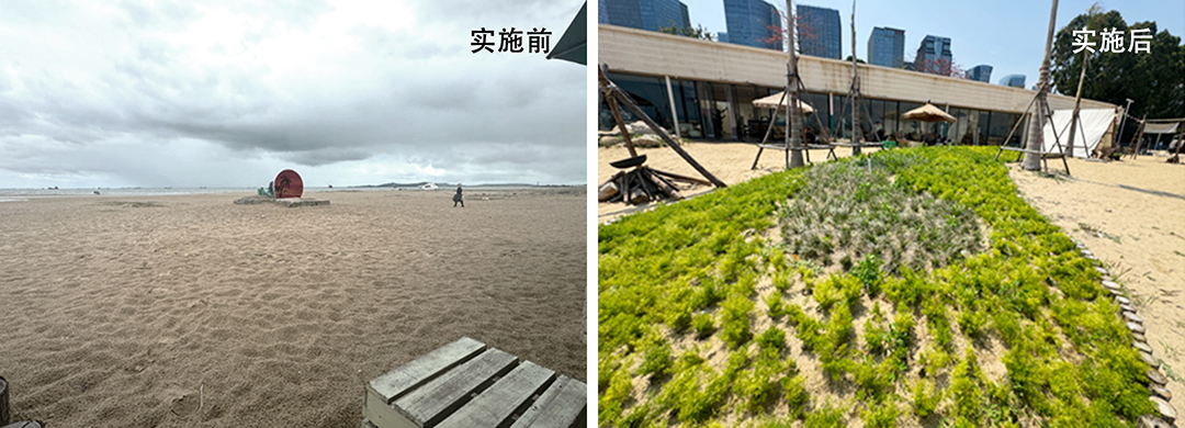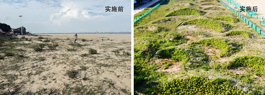 后滨沙地快速防风固沙的近自然植被层级构建技术应用前后对比